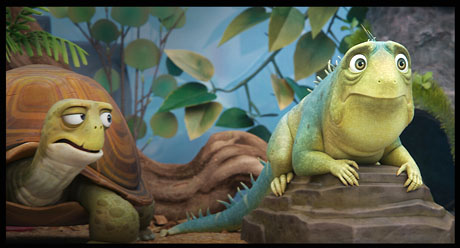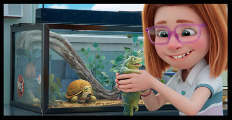 DW: We looked at a lot of lizard and turtle videos to see how they move around. It was more about getting the age sense, that these are creatures that have been around for a long time and what wisdom they can impart from living in a little terrarium for so long — and what their observations would be of the human world and how kids interact. We did some cursory reptile research, but it’s really more about human behavior of animals — instill some humanity in them. It was a lot of fun showing that juxtaposition.