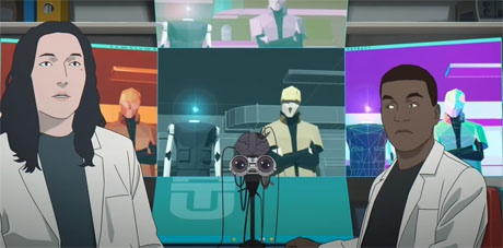 JP: Thank you very much. In this case, it was mainly a question of pushing further the experiments we’d made on our previous works with the film crews (It started on a music video called “Fantasy” for the band DyE and it continued on the first season of the show “Lastman”). Over time, I’ve built up a group of loyal and super-talented collaborators who share my love of effective, synthetic animation and visuals, and who seek to question the usual representations in mainstream animation. For example, I’ve made a point of drawing facial expressions that I don’t think are often seen in animation. I mention this here because I’m pleased that this detail has been noticed in the many feedbacks I’ve received on the film.
